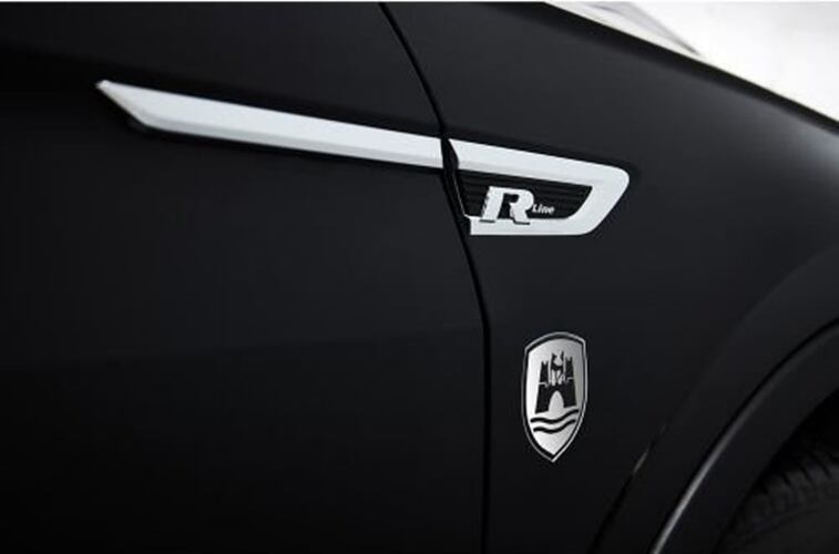 フォルクスワーゲン本社のあるウォルフスブルグ市の紋章をデザイン化したシンプルで力強いデザインが魅力の重厚感のあるエンブレムです。