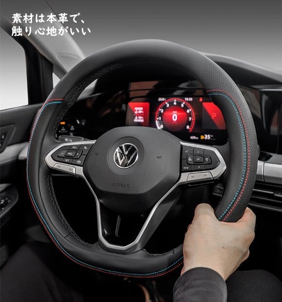 【送料無料】フォルクスワーゲン VW ゴルフ7 ゴルフ7.5 ゴルフ8 専用 Dシェイプステアリングカバー フラットボトムハンドルカバー パンチングレザー 本革 内装品 高級感 通気性 2種選択可能