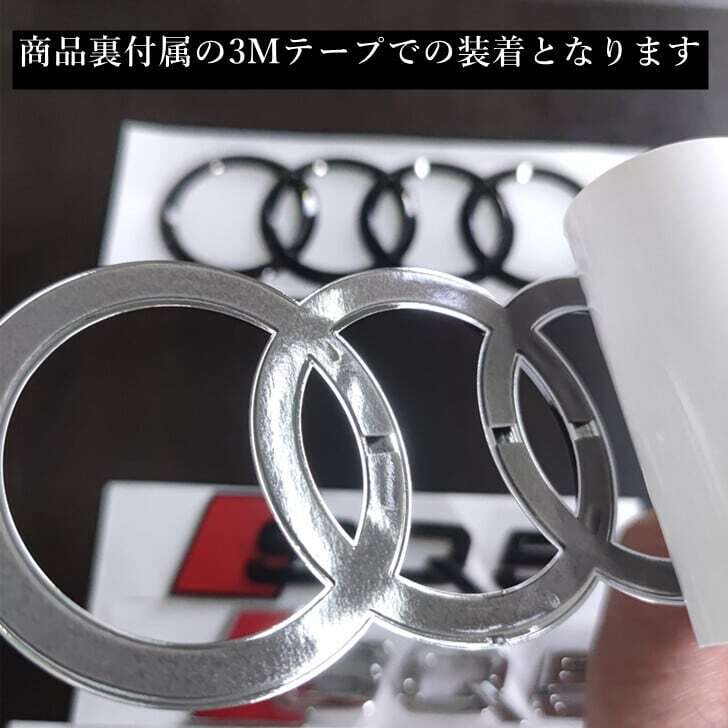 純正リアエンブレムと交換装着。裏面の3M両面テープで固定するタイプです。