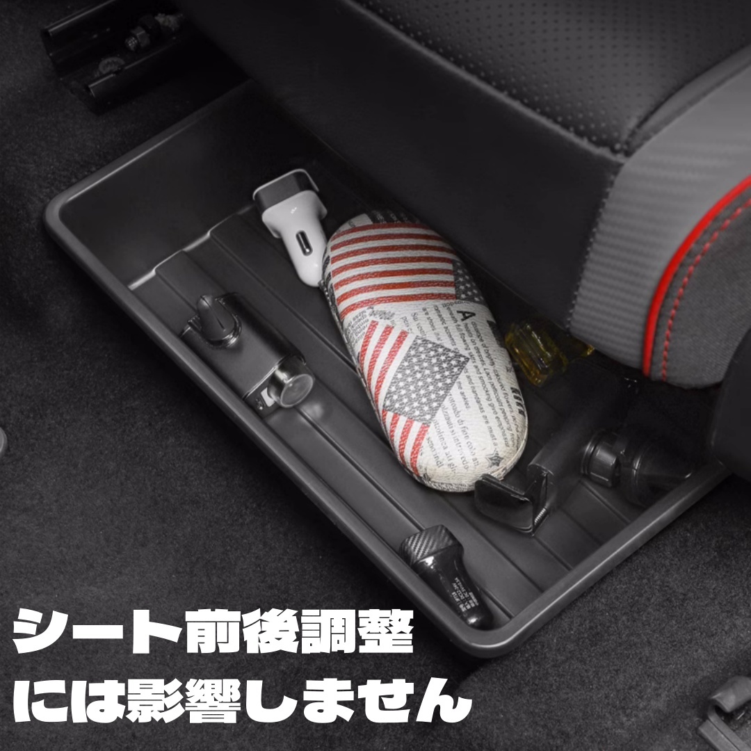 ※トレイからはみ出るほど、物を入れないでください。シートの調節レバーに当たりレバー操作を妨げたり、収納した物が取り出せなくなったりするおそれがあります。