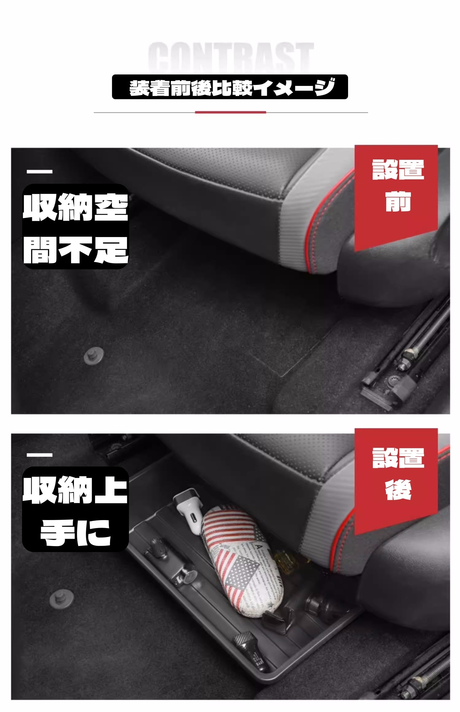アンダーボックスなどついている車は、ボックスの下に設置してください。